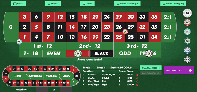 Announced bets (also sometimes called "call bets") are a special type of bet that a player can place on roulette wheel. These bets most commonly cover a specific section of the roulette wheel, which means that the numbers are not next to each other on the roulette table layout as they would be for a regular inside or outside roulette bet.